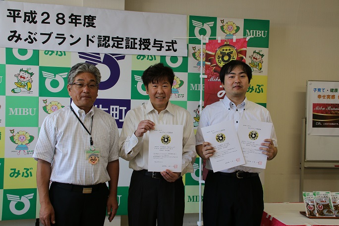 有限会社 玉田豆腐店 2016/09/07 今 ○代表 玉田 様(中央)のことば 「みぶブランド」は、以前から憧れの「ブランド」で、いつか自信のある商品を申請したいと思っていました。今回壬生町の大豆を使用した3品を申請させていただき、認定いただいたこと、大変光栄でうれしく思っております。 「みぶブランド」の名に恥じない商品づくりにこれからも励みたいと思います。 ありがとうございました。