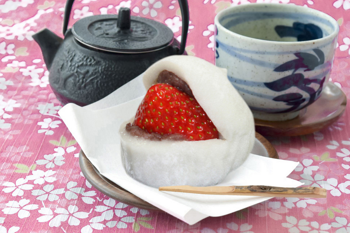 牛乳を加えた生地と小豆、いちごの相性をバランスよく踏まえ、かつてない味わいに仕上げてあるいちご大福となっております。
