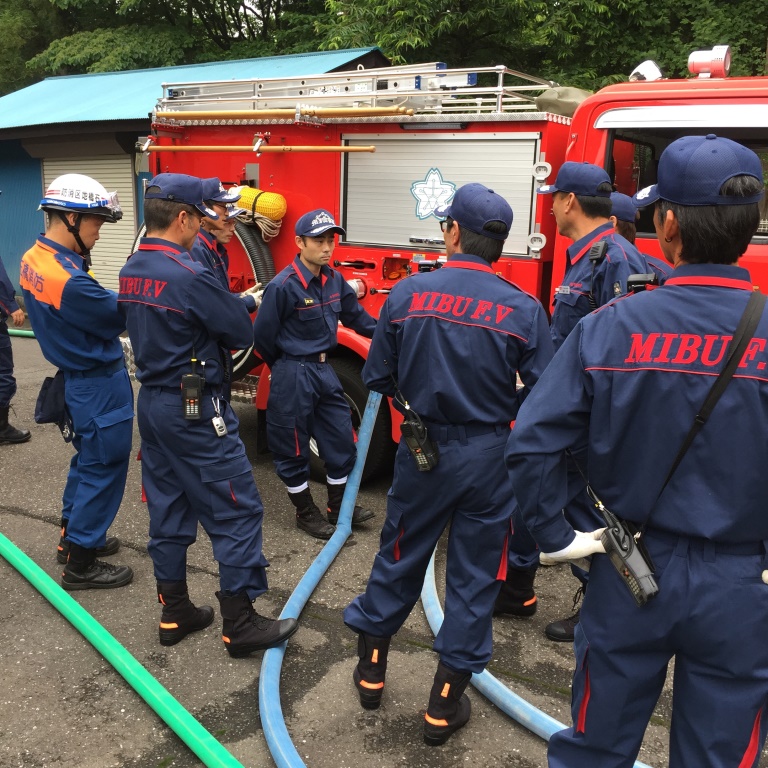 壬生町消防団と壬生消防署が連携訓練を実施!! 2015/07/01 壬生町消防団と壬生消防署で火災時対応のための連携を強化!! 6月21日(日)に壬生消防署と壬生町消防団の第2回合同連携訓練が清掃センター周辺で行われました。 前回の5月31日(日)と同様にポンプ自動車、小型動力ポンプの性能を確かめること、お互いに消火隊形を確認し合うことで、有事に備えた有意義な訓練となりました。 それぞれ課題もありましたが、今後、改善・向上し、町の安全安心のために尽力しようという姿勢にとても誇らしく思います。