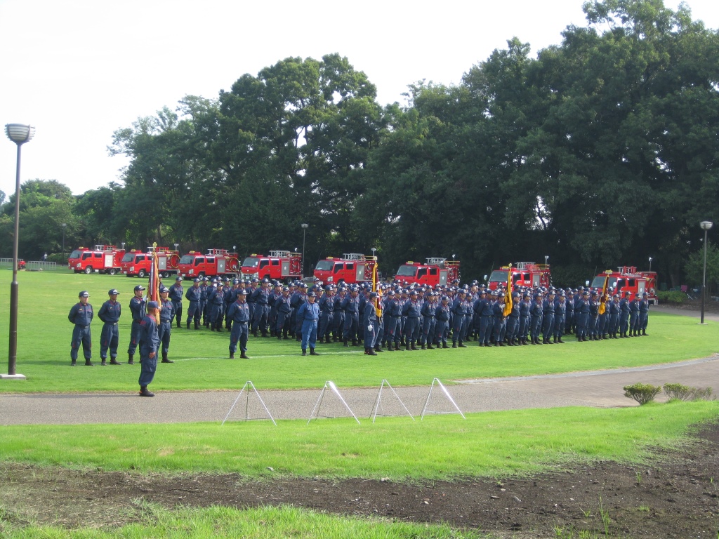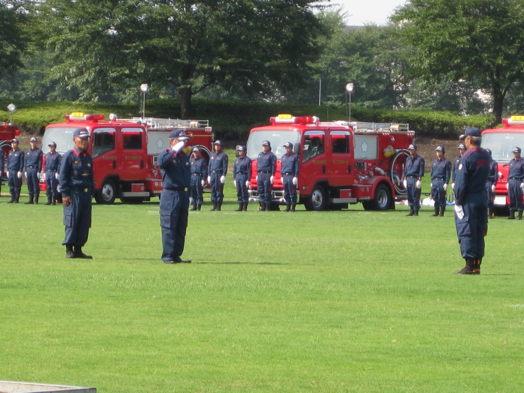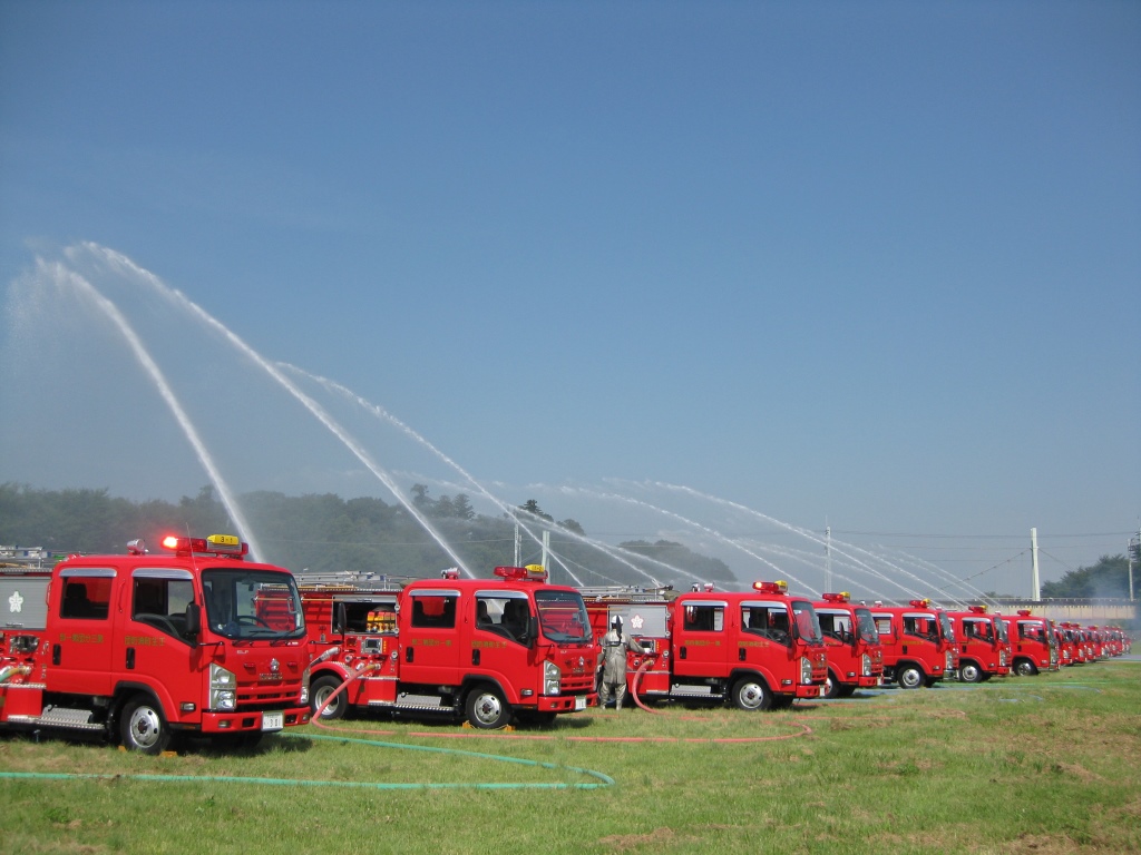 壬生町消防団夏季点検が実施されました! 2015/07/31 7月26日、壬生町消防団(関本 和夫(せきもと かずお)団長・団員203名)による夏季点検が東雲公園多目的広場にて実施されました。 消防関係殉職者に対し黙祷を捧げた後、人員点検及び小菅 一弥(こすげ かずや)町長、市川 義夫(いちかわ よしお)町議会議長、浜野 真(はまの まこと)石橋地区消防組合消防長等による全団員の服装点検、全分団による機械器具点検、第3分団第1部及び第3分団第2部による操法点検に続き、黒川河川敷での放水点検を行い、有事の際に最善の行動が取れるように万全の体制を整えました。