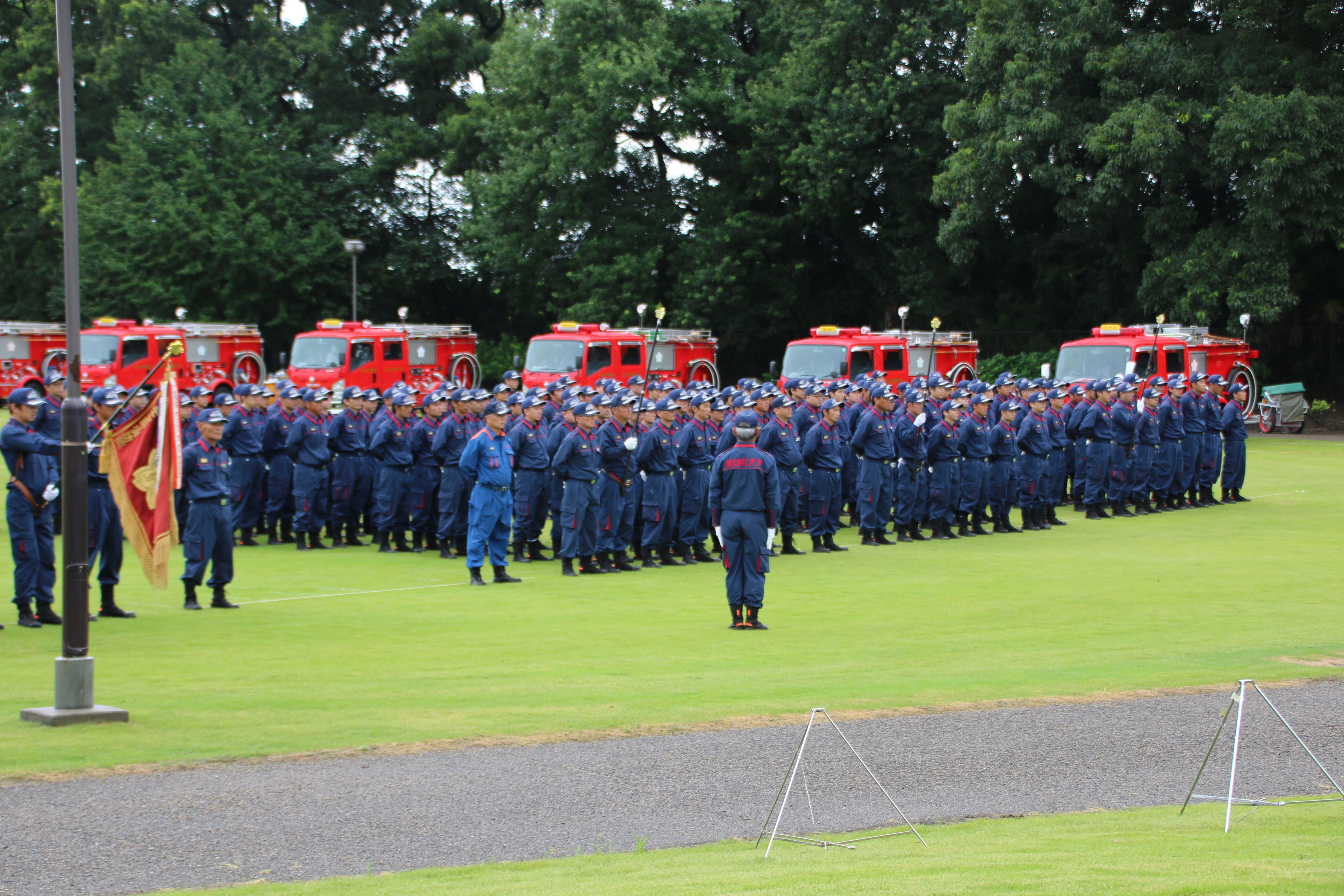 平成29年度壬生町消防団夏季点検が実施されました! 2017/08/04 壬生町消防団夏季点検 7月30日、壬生町消防団(関本 和夫(せきもと かずお)団長・団員202名)による夏季点検が東雲公園多目的広場にて実施されました。 消防関係殉職者に対し黙祷を捧げた後、人員点検及び小菅 一弥(こすげ かずや)町長、鈴木 理夫(すずき みちお)町議会議長、吉田 勝義(よしだ かつよし)石橋地区消防組合消防長等による全団員の服装点検、全分団による機械器具点検・ポンプ操法及び放水点検を行い、有事の際に最善の行動が取れるように万全の体制を整えました。