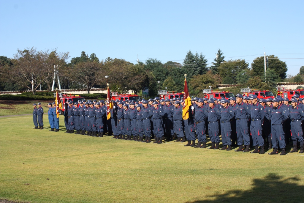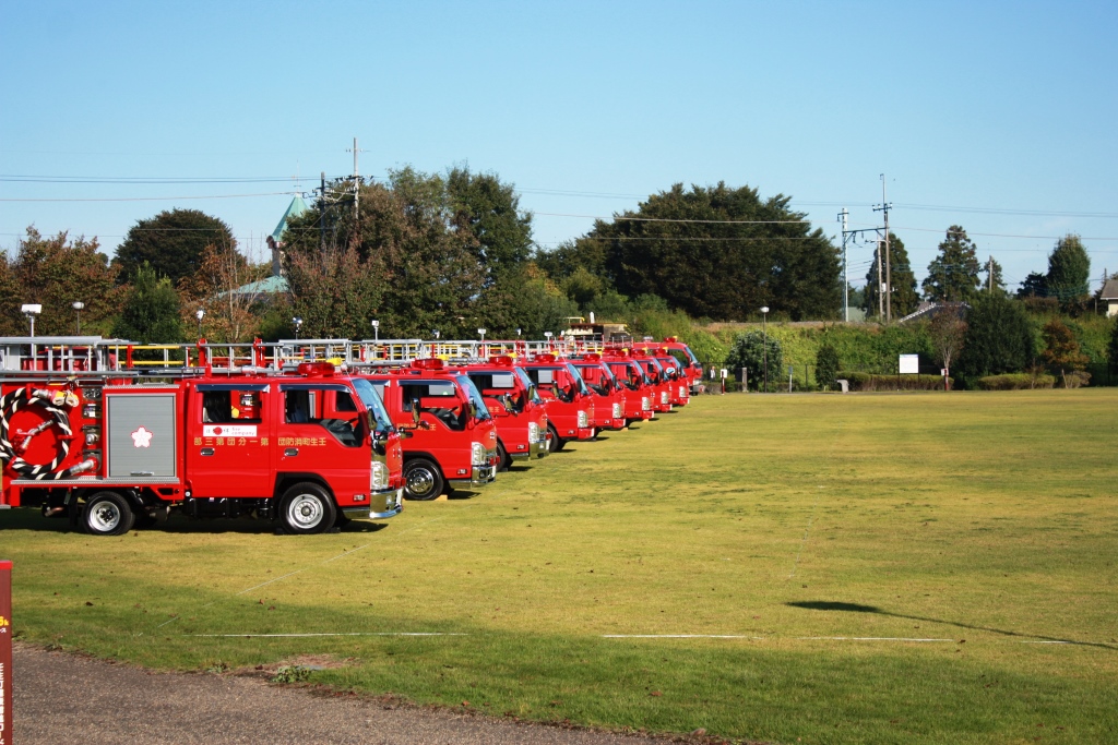 10月8日、壬生町消防団(関本 和夫(せきもと かずお)団長・団員203名)による通常点検が東雲公園多目的広場にて実施されました。
