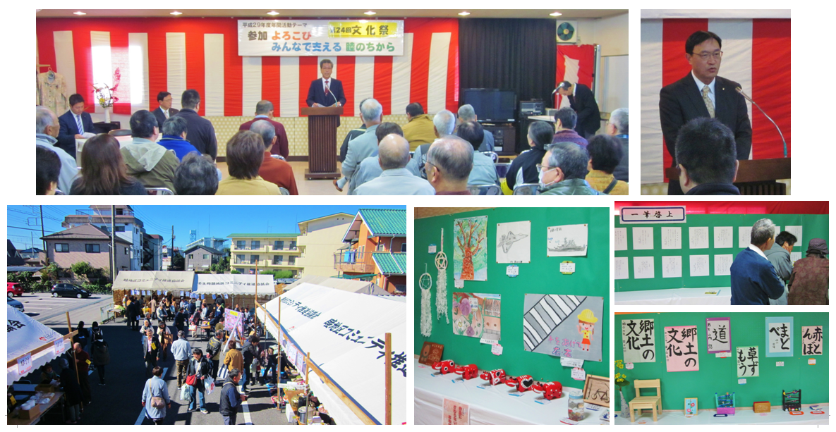 睦地区コミュニティ推進協議会による第24回文化祭が開催されました。 2017/11/29 11月12日、「参加 よろこび みんなで支える 睦のちから」をテーマに、睦地区コミュニティセンターにて24回目となる文化祭が開催されました。 各自治会から集まった63点もの熱のこもった作品や、42名による「笑顔」に関する一筆啓上、南犬飼中学校、輕部芳明校長による「地域と学校で未来を生きる犬中生を育てましょう!」と題した講演など、文化活動に意欲的な会場でした。 また屋外での模擬店では焼きそばや豚汁、新鮮な野菜や花等が販売され、気温に負けない活気溢れる会場となっておりました。