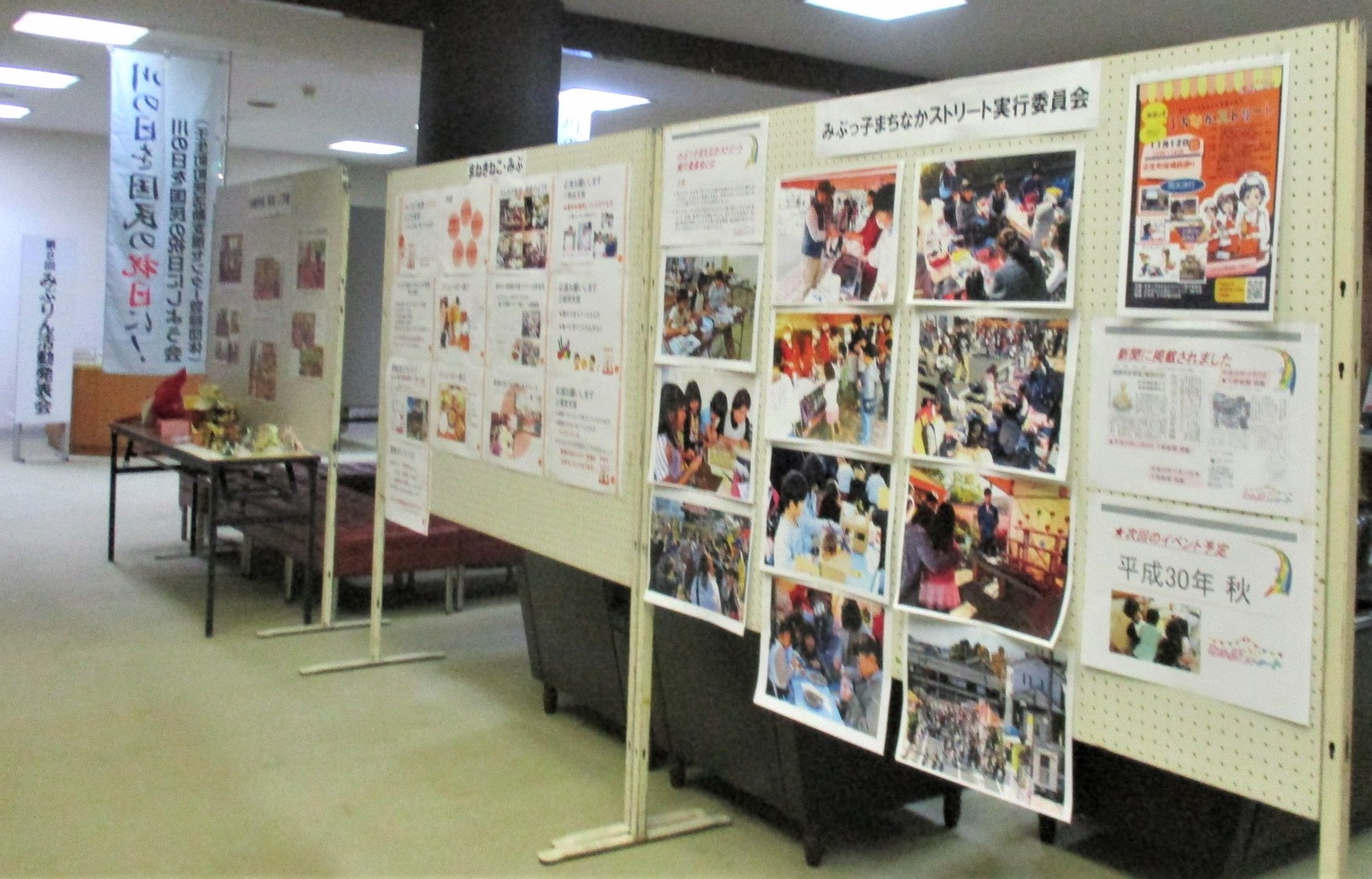 ロビーから会議室まで、みぶりん登録団体・個人の展示を行い、発表会後の交流会を兼ねて、各種団体間での意見交換など有意義な交流会となりました。