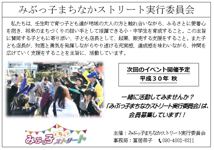 最初に発表した「みぶっ子まちなかストリート実行委員会」は、