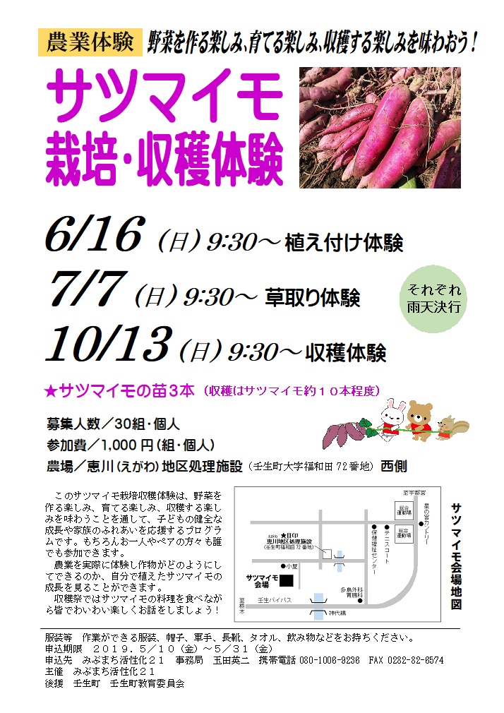 「サツマイモ栽培・収穫体験」をしてみませんか。