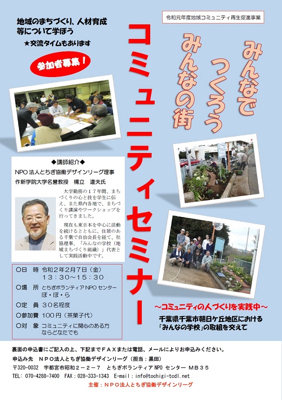 ○問合せ:NPO法人とちぎ協働デザインリーグ 担当:黒田