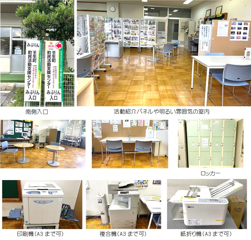 ボランティア団体、NPO等の活動を支援するため、会議室やミーティングルームの提供、印刷機、紙折り機の事務機器を提供します。