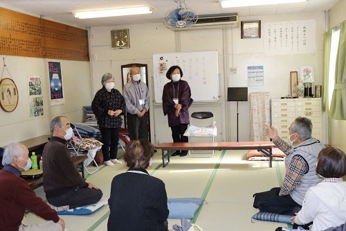 この日は3名で伺いました。昔ばなし・伝説など、季節やご参加の皆さまの様子、お互いのお話のバランスを考えながら語る演目を決めました。途中、手遊び「桃太郎さん」などを交え、楽しいひとときを過ごしていただけたと思います。