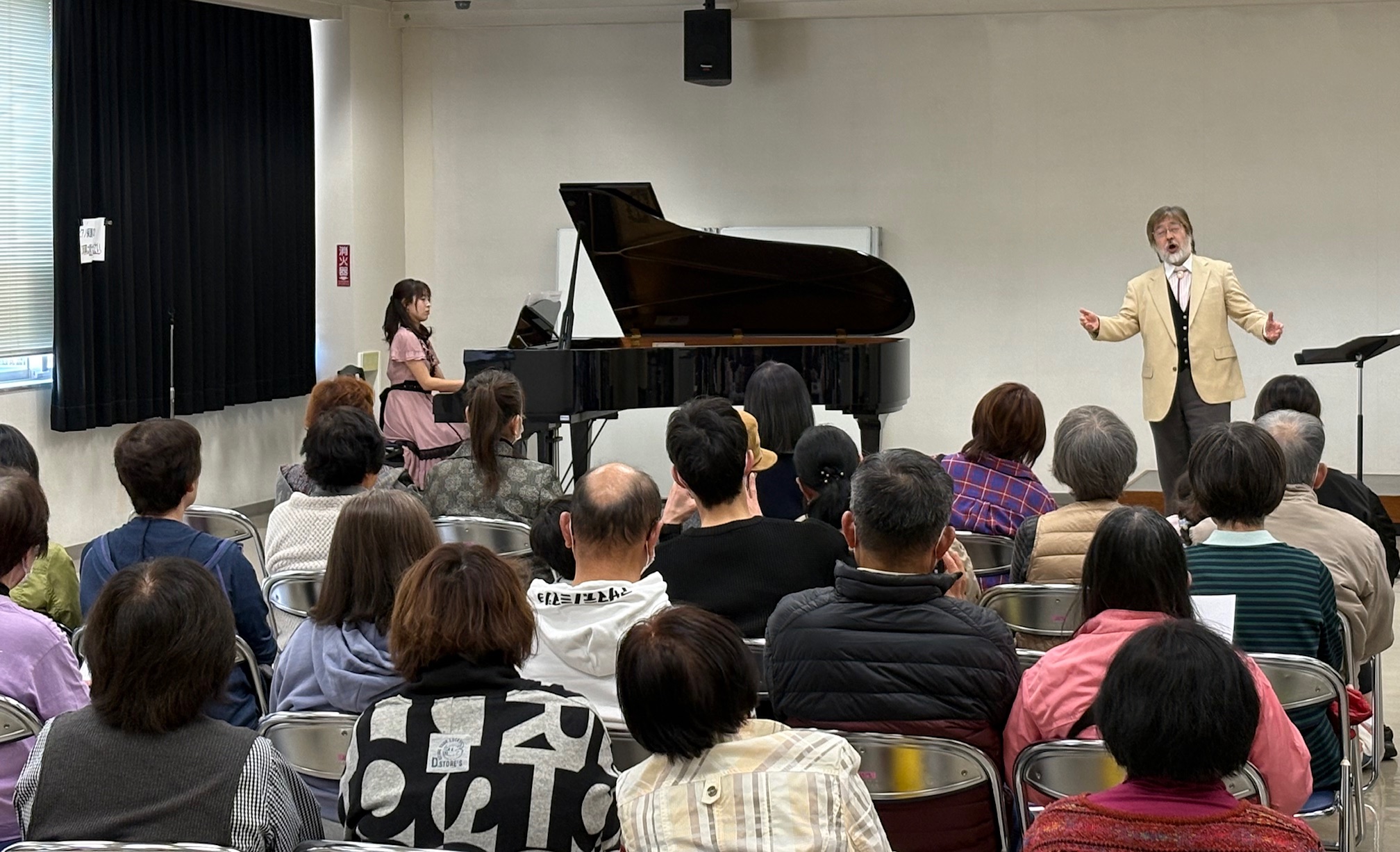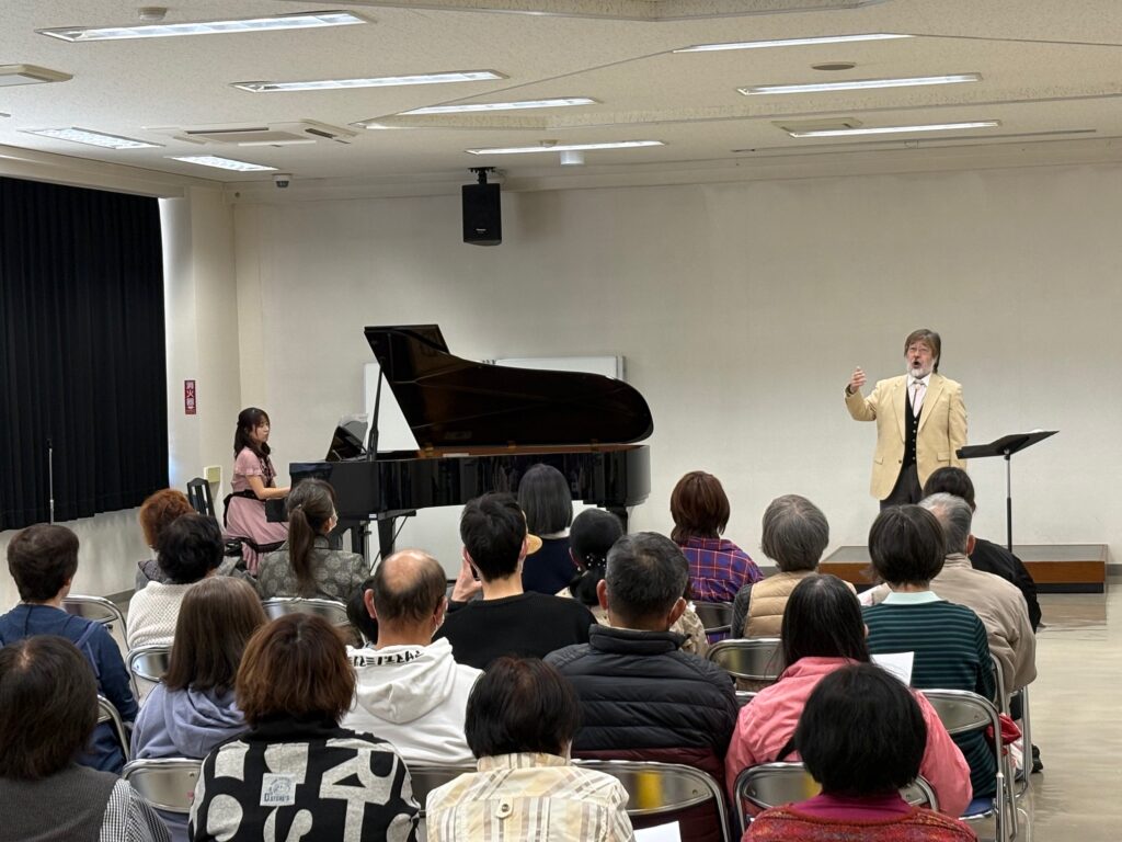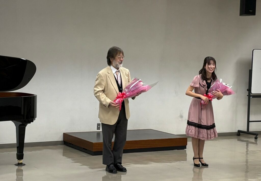 ミニコンサートでは、壬生町出身のピアニストの粂川 玲衣香さんと、オペラ歌手の石田 忠隆さんをお迎えしました。