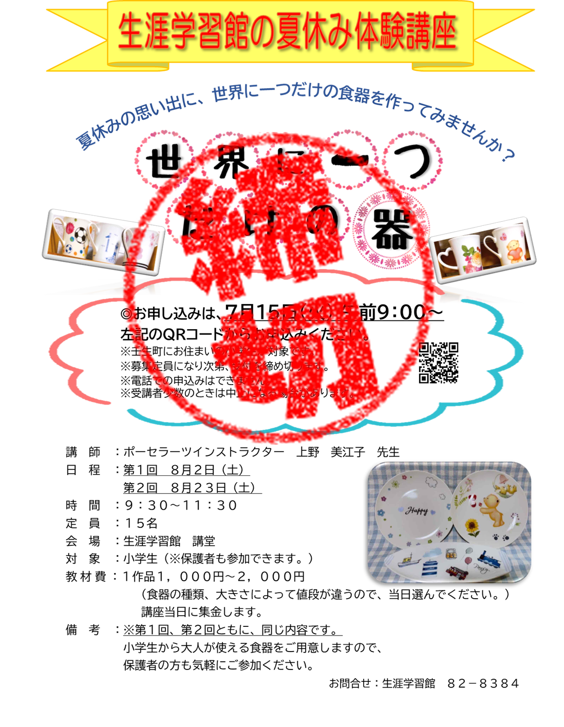 【終了しました】令和7年度 夏休み講座 参加者募集